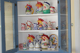 Pretty much everywhere you look in my house, you'll see roosters. I don't know why I love them so? This is just a peek at some of my happy hens. They are from all over the globe. I have some from Italy, Greece, Portugal, Germany, Mexico, and probably a few made in China :) I have to say my Italian roosters are by far my favs. I've had to tell my family and friends not to give me any more roosters because I've run out of room for them. We were watching Survivor last week and one tribe had won 2 chickens and a rooster in one of the challenges. They decided to eat one. They chose one of the chickens. I was yelling at the TV "eat the rooster you fools! All he does is wake you up early and you don't need him to have eggs!" Obviously there are people who don't know that you only need a rooster if you want more chickens :) Tuesday, October 26, 2010