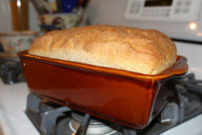 Remove your oh so yummy smelling bread from the oven and allow to sit for 10 minutes. (Try to control yourself and not pull off a huge chunk and slather with butter.......) |