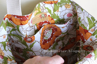A month or so back, I ran across this fabulous cotton canvas shower curtain at my favorite thrift store for $1.91. You KNOW I had to have it! I knew that I wanted to make some kind of tote bag, but I needed fabric to co-ordinate with it. I ended up taking the shower curtain with me to M & L Yardage and found this great fabric called "Mod Charm" by Anthology. It was exactly what I was looking for! And at $4.98 a yd it was perfect! I used this great free tutorial that I came across over at Noodlehead. Seriously....you need to jump over there and bookmark this one! The tutorial is very easy to follow and totally FTS! I love everything about this bag! In my opinion, it's the perfect size! Love love love it!!!